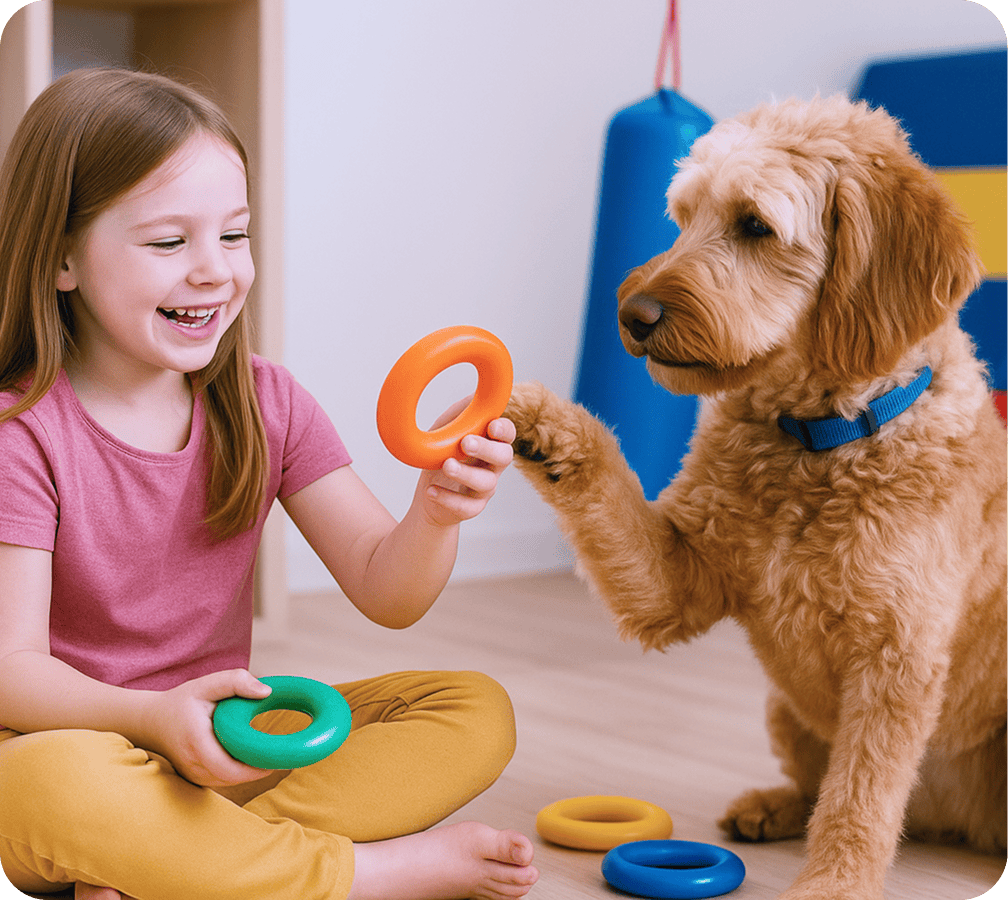 - Tiergestützte TherapieFast alle ergotherapeutischen Behandlungsmethoden können mit der tiergestützten Therapie kombiniert werden.